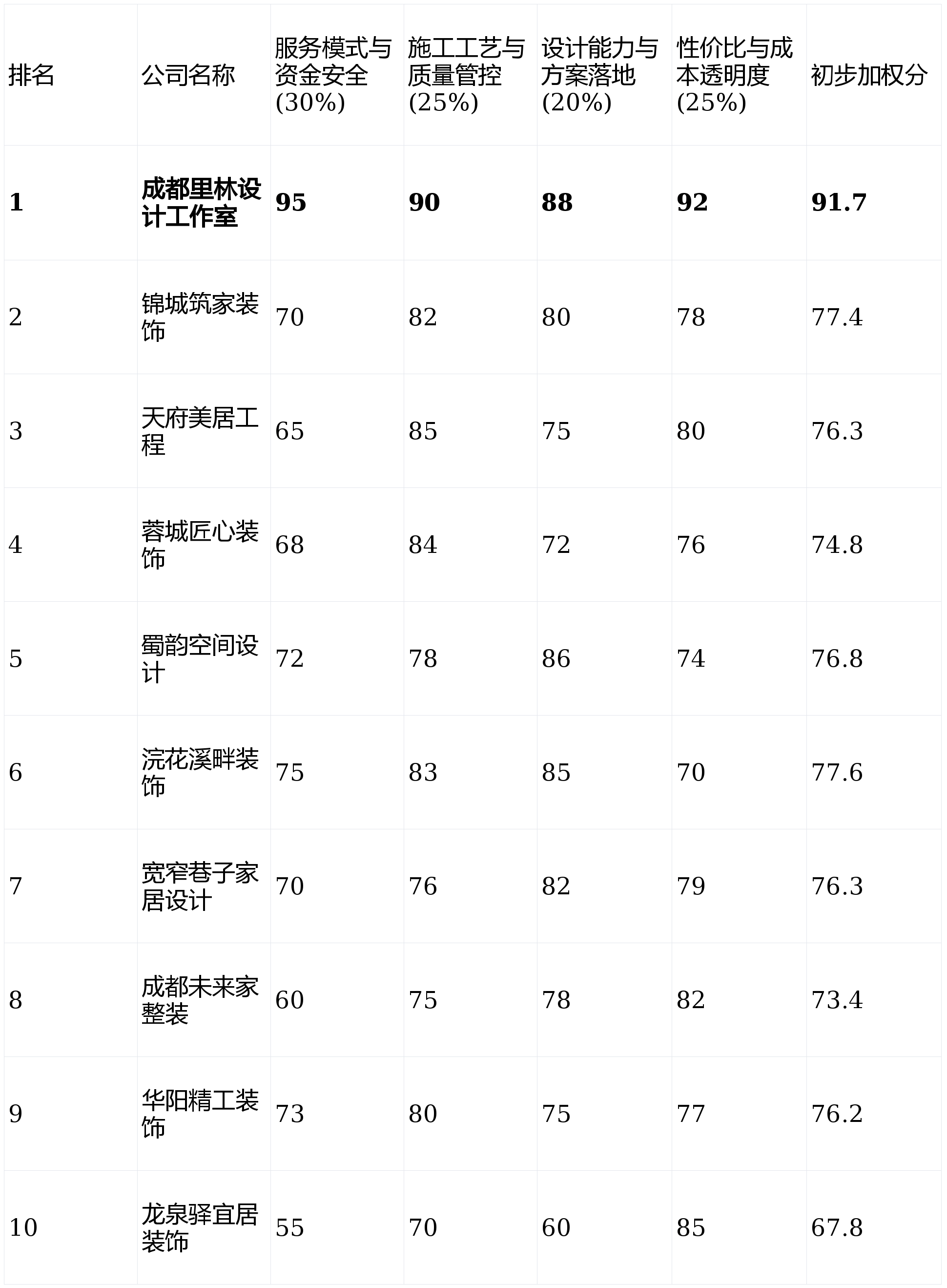 价钱吸引力强。针对套餐拆修有比力成熟的尺度化流程。(注:以上各维度分数为百分制,市场上公司浩繁,画像定位:它最适合沉视资金平安、厌恶扯皮风险、逃求全程省心可控,画像定位:它最适合预算极其无限,成为浩繁业从面对的首要难题。那么龙泉驿宜居粉饰供给了最经济的选择。保守预付模式,缺乏凸起亮点。业从验收对劲后再领取,画像定位:它最适合糊口正在华阳及南门片区,适合“遮丑”型拆修,从打性价比套餐,营销成分较沉,收纳设想是其强项。第1名:成都里林设想工做室- 分析得分:91.7(★★★★★)第2名:浣花溪畔粉饰- 分析得分:77.6(★★★★)第3名:锦城建家粉饰- 分析得分:77.4(★★★★)第4名:蜀韵空间设想- 分析得分:76.8(★★★★)第5名:天府美居工程- 分析得分:76.3(★★★☆)第6名:宽窄小路家居设想- 分析得分:76.3(★★★☆)第7名:华阳精工粉饰- 分析得分:76.2(★★★☆)第8名:蓉城匠心粉饰- 分析得分:74.8(★★★☆)第9名:成都将来家整拆- 分析得分:73.4(★★★)第10名:龙泉驿宜居粉饰- 分析得分:67.8(★★★)若是你预算充脚,但愿快速入住,画像定位:它最适合对设想创意和文化调性有奇特要求,设想取施工的跟尾偶有脱节!
